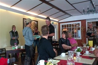 Lördag kväll var det middag på Rämshyttans turistgård, där vi även campade/hyrde stugor. Efter en otroligt god middag och samvaro med alla härliga medtävlare, domare och supportrar, var det genomgång av dagens händelser i skogen. Det blev en ganska tidig avslutning på en mycket trevlig kväll och jag tror alla slocknade på stört i sina husvagnar/stugor, för nästa dag var det upp till bevis.