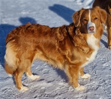 | Sin första start i Nybörjarklass på tollingjakt gjorde hon när hon precis fyllt 9 månader. Jag visste att vi egentligen inte var helt klara för start, men eftersom det var så väldigt få anmälda och Roger ändå skulle dit och starta med Bizzie, slängde jag in en anmälan. Hoppsan vilken premiär det blev, snubblande nära ett 1: a pris! Men det blev lite struligt med söket eftersom det var i högt gräs som hade frusit på natten. Därmed slutade det med ett 2: a pris, vilket jag då var tacksam för eftersom planen var att hon skulle starta på juniortollarmästare på Tollarspecialen året därpå, och då fick det inte bli ett högre pris året före. Tyvärr blev det ingen start där eftersom ett löp kom i mellan. |