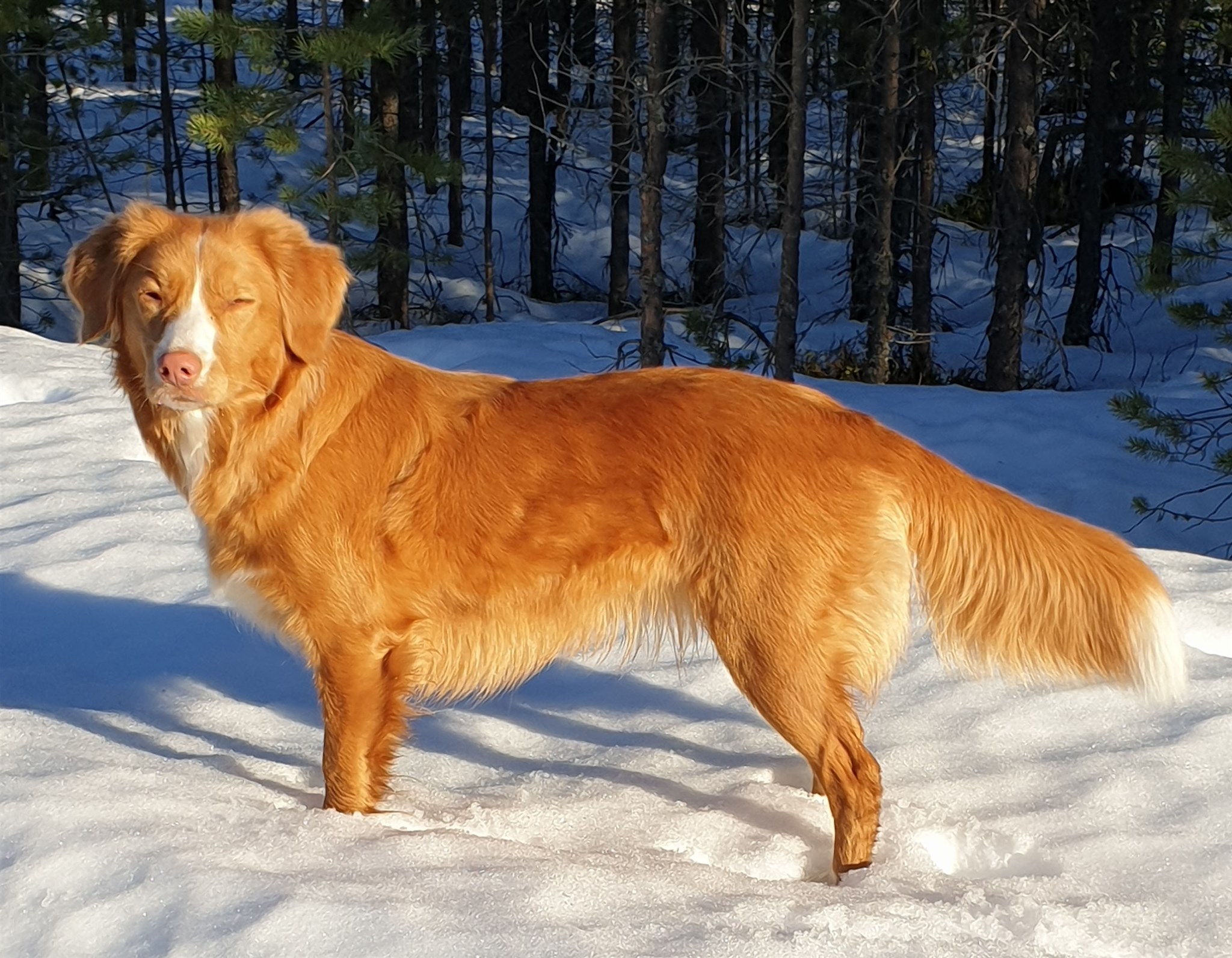 Mandie är inte bara duktig i Tollingjakt och Viltspår, hon är snygg också. 2023 blev hon Svensk Utställningschampion med jaktmerit, och har fått ett antal BIM, BIR samt BIR jakt och BIS jaktplaceringar. Ibland undrar jag om det är något den här tjejen inte kan? Det sitter nog i matte i så fall.